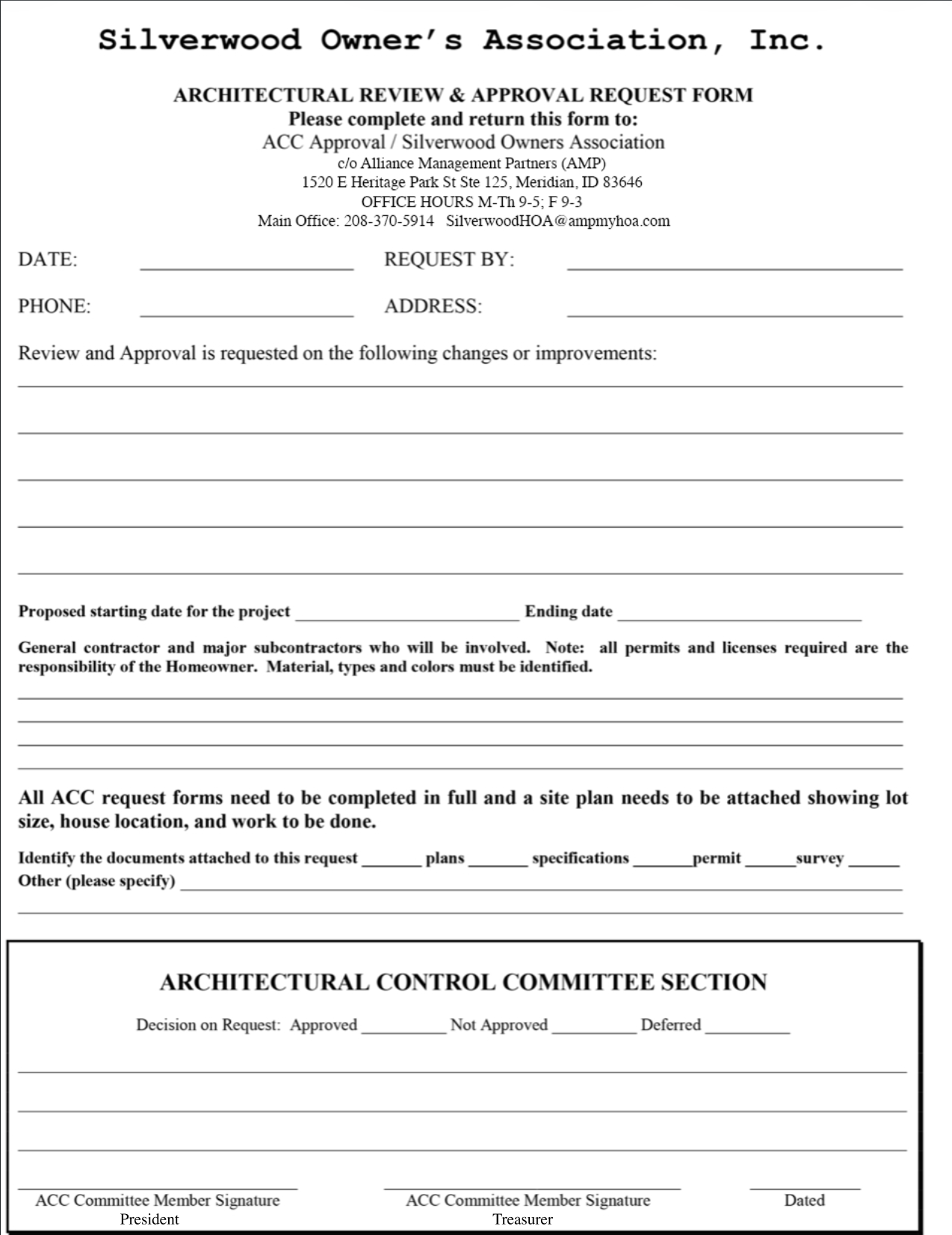 Silverwood Subdivision Architectural Review & Approval Request Form