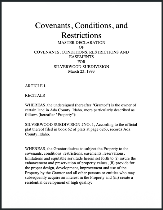 You can download and view the CCR’s and Subdivision Plat Maps. If you don’t have Adobe Acrobat Reader set up to automatically open the PDF file in your browser, right-click on the graphic and save the file to your computer.